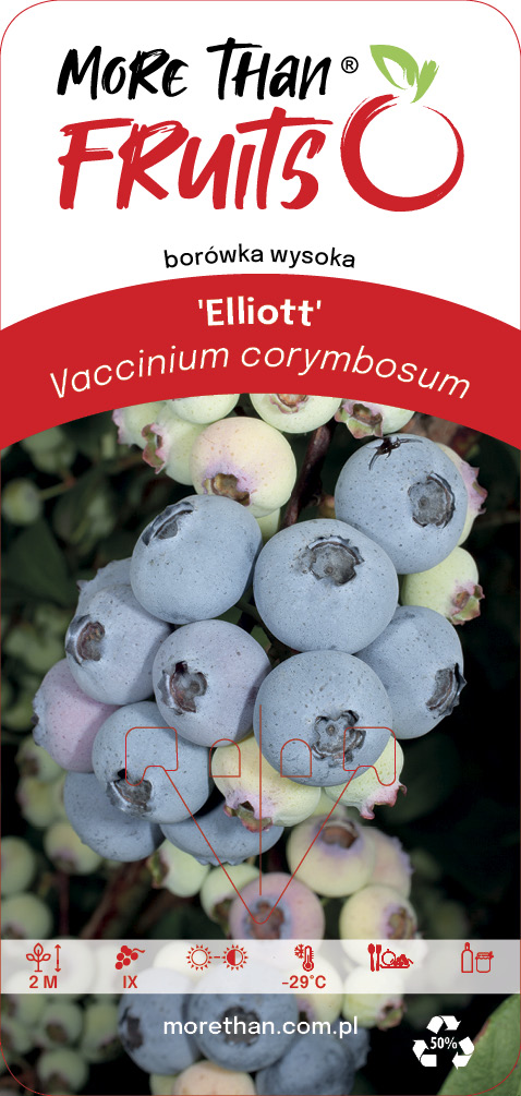 Eliot är stark, växande sort som kan bli 2m hög. Blommar i maj som följs av stora bär som mognar andra halvan av augusti och bra bit i september i bland till oktober.